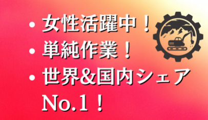ショベルカーの部品を製造している工場ですが、作業を行う部署は重たい部品を扱っていませんので力作業に自信のない方や女性の方でも問題なくお仕事ができます。