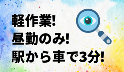 モノを持ち運んだり、持ち上げたりなどの体力を使うお仕事より、検査のようなコツコツ作業が向いている方におススメです。