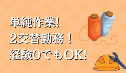 お裁縫で服やぬいぐるみなどを作る為に必要不可欠な糸を製造している工場です。 お任せするお仕事は機械オペレーターです。 ・綿から糸にする為の機械に材料をセットして、次に機械の設定をして最後にスタートボタンを押します。 ・糸が途中で切れてしまったら、手作業でつなぐこともあります。 これらの繰り返しです。 |