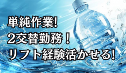 ミネラルウォーターボトルの製造スタッフ(2交替) ミネラルウォーターを作っている工場です。 お任せするのは、ミネラルウォーターボトルの製造に関わるシンプルな補充作業です。 具体的には、 ・段ボールの補充 ・ペットボトルの原料の補充 ・キャップ(ふた)の補充 といった作業が中心です。 また、フォークリフト免許は必要ですが、実際に乗る頻度は少なめですので、ブランクのある方や経験が浅い方も安心してご応募いただけます。 |